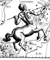 La costellazione del Centauro, viene associata automaticamente all’emisfero australe, ma in realtà è visibile anche, per una significativa porzione, dal Nord Italia, e, per chi osserva dal nostro meridione, sono visibili tutti gli oggetti principali (ma non le celebri stelle alfa e beta, che appena sfiorano l’orizzonte alla latitudine del Cairo). E’ una costellazione molto grande e molto antica (una delle 48 di Tolomeo). La figura dei centauri, esseri mitologici in parte uomo e in parte cavallo, ha le sue radici nell’arte assiro babilonese. Il più celebre mito associato all’origine dei centauri narra che essi nacquero dalla relazione di Crono, padre di Giove, con la ninfa Filira. La particolare progenie deriva dal fatto che Crono si trasformava in cavallo durante le sue visite alla ninfa. Tornando alla costellazione, essa rappresenta il centauro Chirone, che a differenza degli altri centauri brutali e di fattezze mostruose, fu amico degli uomini ed abile musicista, poeta, matematico e medico. Avrebbe inventato le costellazioni per aiutare gli Argonauti nel loro difficile viaggio. Divenne maestro di molti eroi fra cui Ercole, che lo ferì accidentalmente con una freccia avvelenata con il sangue dell’Idra di Lerna. Chirone in preda a grandi sofferenze, ma senza alcuna possibilità di morire essendo immortale, rinunciò alla sua immortalità a favore di Prometeo e Giove, commosso da questo gesto generoso, lo collocò fra le stelle.