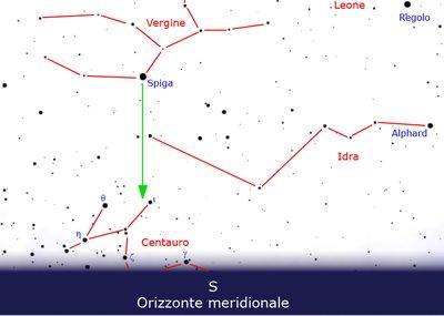 La costellazione ha un’estensione imponente ed annovera due oggetti speciali ovvero il sistema stellare più vicino al Sistema Solare (alfa Centauri, sistema triplo che comprende la famosa Proxima Centauri, così chiamata perché dista da noi appena 4,2 a.l.) e l’ammasso globulare più grande e spettacolare del cielo, Omega Centauri, visibile dall’Italia attaccato all’orizzonte, più grande della Luna piena. Tra le “zampe” della figura mitologica, letteralmente incastonata nel confine meridionale del Centauro, in piena Via Lattea, si trova la splendida costellazione della Croce del Sud, invisibile dall’Italia. Duemila anni fa, da Palermo alfa e beta Centauri erano visibili, sia pure rasenti all’orizzonte, come pure la Croce: oggi il lentissimo moto di precessione rende la vista impossibile. Per rintracciare la costellazione basta spostarsi verso sud, dopo aver attraversato la coda dell’Idra.